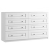 The Lazio 8 drawer twin chest combines timeless style with sturdy craftsmanship. Its elegant matt finish and finely detailed drawer and door fronts add a classic touch to any bedroom. Built solidly, the Lazio range offers reliable storage and lasting quality, making it both a practical and stylish addition to your space. Available in two colour choices of Light grey or White.