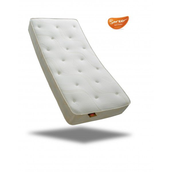 Made by the NBF approved Sareer team, the Sareer Matrah Latex Coil Mattress combines a supportive coil sprung unit with a luxury layer of latex foam.